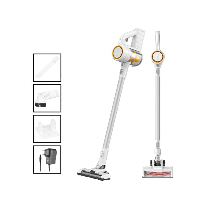 Aspirapolvere senza fili Ingco. Alimentata a batteria. Può essere utilizzata per pavimenti, piastrelle, tappeti, divani, auto etc. Tensione: 22,2V Pressione di vuoto (KPa): =10 Kpa Capacità: 0.8L Potenza (W): 140W Ciclone multiplo Batterie al litio da 2200mAh Motore in filo di rame puro Filtro HEPA Volt di carica: 220V-240V~50/60Hz Tempo di ricarica: 4.5H Autonomia: =35min a bassa velocità Autonomia: =20min livello booster Contiene: 1 tubo di metallo, 1 caricabatteria, 1 gancio di plastica, 1 ugello per fessure, 1 spazzola per divano.