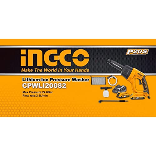 Ingco Cpwli20082 Idropulitrice A Batteria 20 V Con Batteria E Caricabatterie 2 Ah Accessori Inclusi