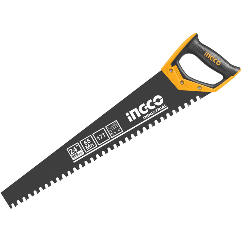 Dimensioni: 600mm Materiale:65MN 17 denti in acciaio al tungsteno Adatta per il taglio di cemento, cartongesso,blocco di ghiaccio etc. Trattamento termico sui denti Trattamento della vernice elettroforetica superficiale Impugnatura morbida in due colori