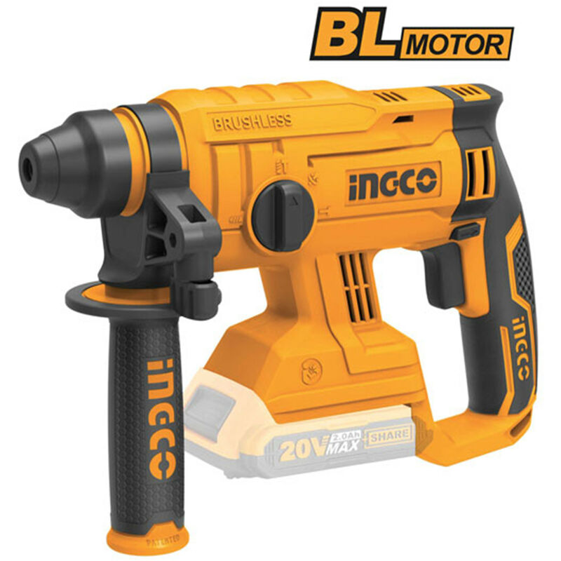 Tensione: 20V Motore brushless (senza spazzole) Velocità a vuoto: 0-1.350rpm Blocco rotazione per solo scalpellatura Potenza colpo: 1,5J Attacco: SDS-Plus Perforazione max: Ø 22mm su calcestruzzo Luce da lavoro integrata Batteria NON INCLUSA Carica batterie NON INCLUSO n.3 punte - n.1 scalpello