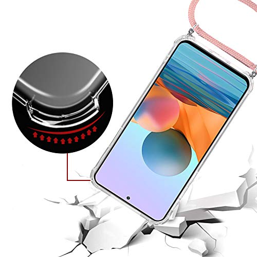 Ingen Custodia con Collana per Xiaomi Redmi Note 10 Pro/10 PRO Max, Cover Trasparente con Cordino Redmi Note 10 PRO, Morbido Silicone TPU Bumper Shock Absorption Corner Cushion Protettiva Case - Rosa