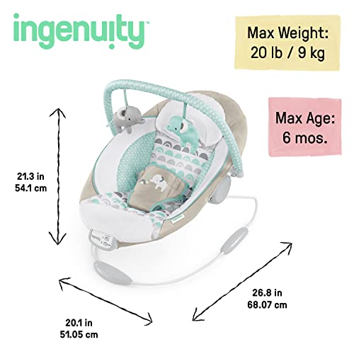 Ingenuity Sdraietta Whitaker, 8 Melodie, Vibrazioni Rilassanti, Arco Giochi con 2 Peluche - 3.06 kg