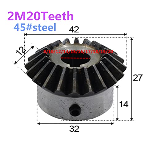1pc Ingranaggio Conico 2Modulus 20 Denti Foro Interno 8/10/12/14/15/16/17/18/19/20mm Gear 90 Gradi Angolo di Ingranaggio Ingranaggi In Acciaio