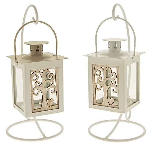 DETTAGLI: Lanterne (assortite in bianco e avorio) per candele, lumini e tea lights con pannelli laterali raffiguranti l'albero della vita e stand sospensorio;