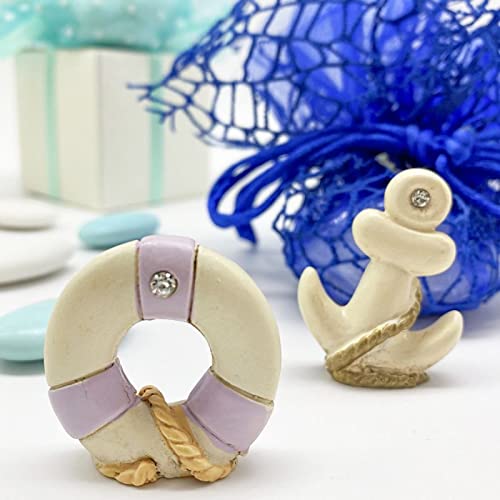 Ingrosso e Risparmio 12 Mini Statuette Tema Mare assortite in Due Varianti, a Forma di Ancora e salvagente con Strass, segnaposto economici, confettata (Personalizza Confezione)