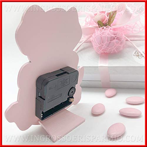 Orologio in legno a forma di cagnolino rosa La Carica dei 101, con scatola regalo inclusa, novità bomboniere battesimo bimba.