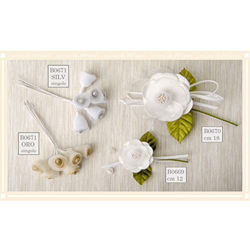Ingrosso e Risparmio Kit 24 Pezzi Fiori Finti Bianco e Argento in Organza, bomboniere venticinquesimo, Matrimonio.