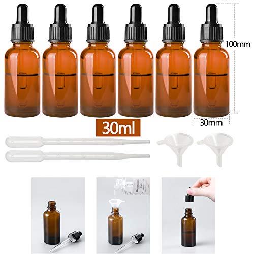 INHEMING Ambrato Flaconi Contagocce in Vetro, 30ml Marrone Bottiglie Contagocce Vetro con Pipette,per Laboratorio,Olio Essenziale, Aromaterapia,con Imbuti + Pipette, 12 Pezzi