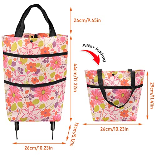 INHEMING Carrello Portaspesa,Borsa per la Spesa Pieghevole con 2 Ruot,Multifunzione, per la Spesa, da Viaggio - Fiore