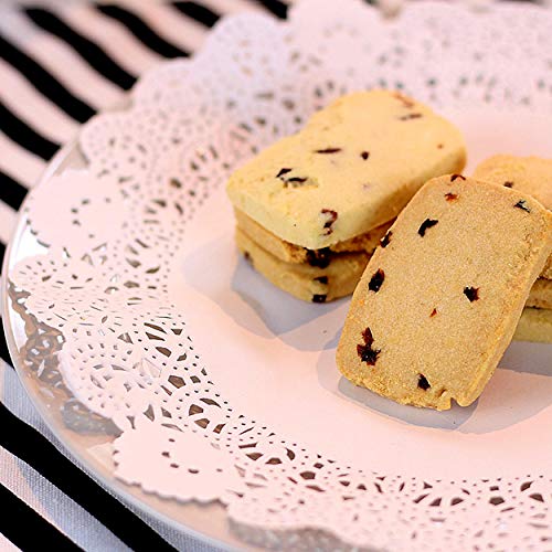 DESIGN RAFFINATO - I centrini di carta pizzo bianco con un design antico in pizzo, il delicato e bellissimo design del bordo in pizzo aggiunge un fascino visivo ai cibi.