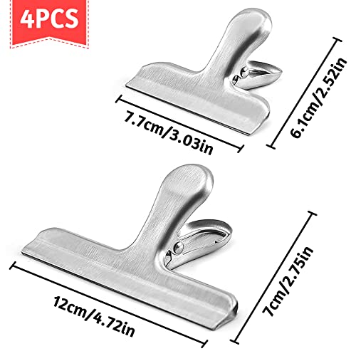 INHEMING 4 Pezzi Mollette Chiudi Sacchetti, Mollette Cucina, Clip per Sacchetti per Alimenti in Acciaio Inox, per Biscotti,Caffè, Pane, Snack Bags ECC - Argento,7,7 /12cm