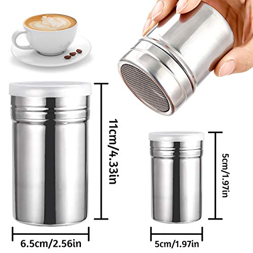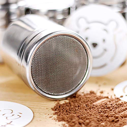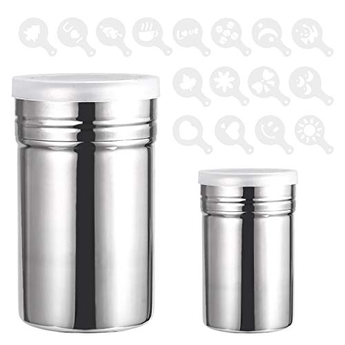 INHEMING Spargi Cacao in Polvere, 2 Pezzi Spargi zucchero a velo in Acciaio Inox con Coperchio,con 16 Stampino Cappuccino