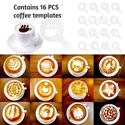 16 x Stencil: 16 diverse forme di plastica.Si tratta di stencil artistici professionali per creare bellissimi modelli per latte macchiato, cappuccino, cupcakes, torte, cioccolata calda, ecc.