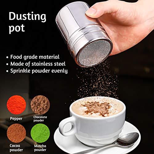 Funzione: Usati per cospargere uniformemente il caffè con cacao in polvere o cannella in polvere, per migliorare il sapore, sono anche uno strumento perfetto per sale, pepe e zucchero a velo o per decorare torte e cupcakes.