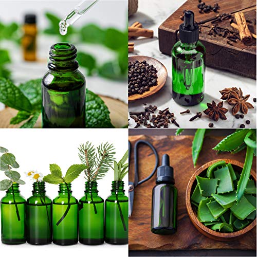 INHEMING Verde Flaconi Contagocce in Vetro, 30ml Bottiglie Contagocce Vetro con Pipette, per Laboratorio,Olio Essenziale, Aromaterapia,con Imbuti + Pipette, 12 Pezzi
