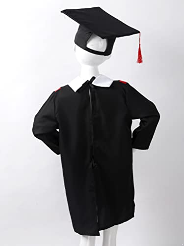 Inhzoy Abito Carnevale Unisex da Laurea per Bambini Costume da Asilo Nappa Prescolare Berretto da Laurea per Asilo Nido Copricapo Set di Nappe Costume Laureato Bambini Rosso 5-6 anni