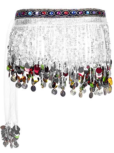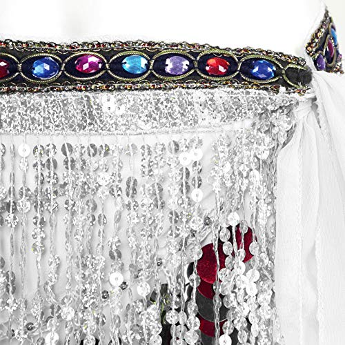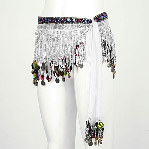 Inhzoy Sciarpa di Danza del Ventre per Donne Nappa con Paillettes Lucide Sciarpe Cintura Bandana da Ballerina Gonna da Danza Flamenco Zingaro Vita Catena Costume da Ballo Argento Taglia Unica