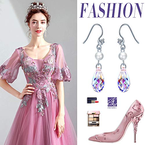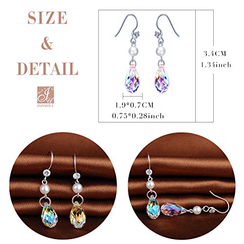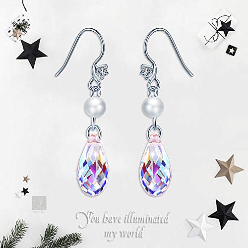 Inifinite U - Orecchini da donna con perle in argento Sterling 925 e cristallo austriaco, con cristalli colorati, regalo perfetto per compleanno