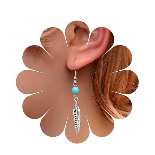 Inilbran Boho Turchese Foglia Pendente Orecchini Tribali Piuma Dangle Orecchini Vintage Foglia Goccia Orecchini Etnici Turchese Perlina Goccia Orecchini Gioielli Per Donne E Ragazze