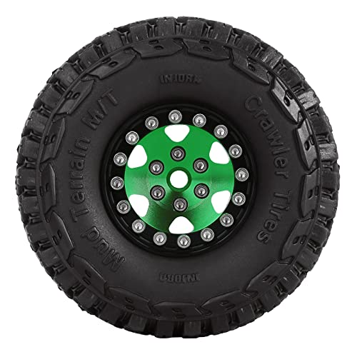 INJORA 1.0 RC Beadlock Ruote e Pneumatici Set Micro Crawler Upgrade Part Gomma Morbida 4PZ per 1/24 RC Crawler Car Axial SCX24 C10 Deadbolt JLU Gladiator Bronco,Nero Verde(W1026-T1002)