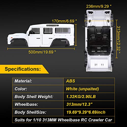 Vestito per 1:10 RC Crawler Traxxas TRX4 Axial SCX10 90046.Nota: è necessario rimuovere i parafanghi di serie in primo luogo se si installa questo corpo sul telaio TRX4