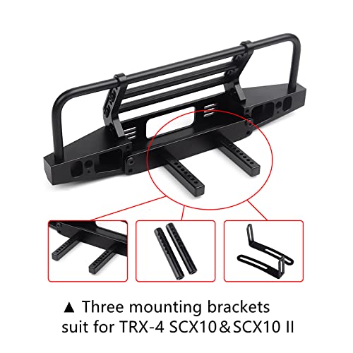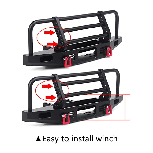 INJORA RC Paraurti Metallo Front Bumper con Traino Gancio per 1:10 RC Crawler Traxxas TRX4 Defender Axial SCX10 SCX10 II 90046 90047 (Nero)