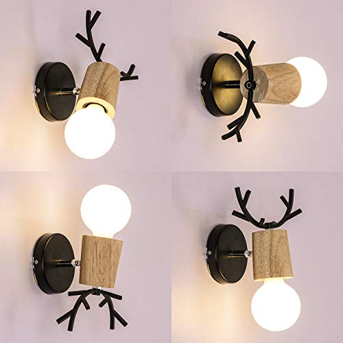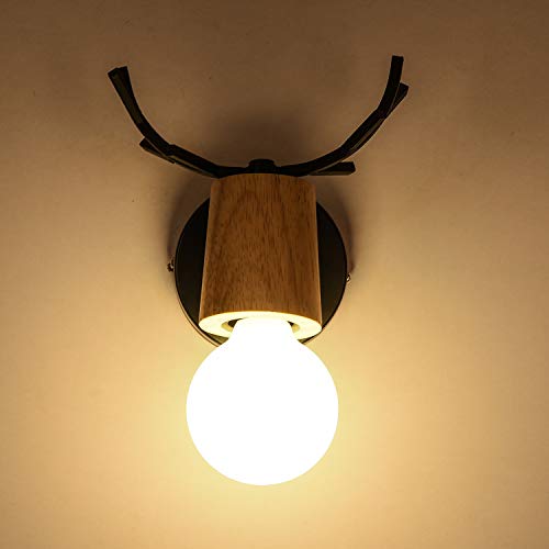 Injuicy Moderno Metallo Antlers Lampada da Parete Contemporaneo Ferro Legna Lampada a Muro Applique da parete a Luce per Capezzale Casa Bar Ristoranti Club Soggiorno Camera da Letto (A)