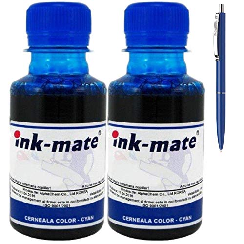 Ink-Mate - Cartuccia di inchiostro compatibile per HP 3JA23AE (963), 2 confezioni da 100 ml, colore: ciano e penna Schneider