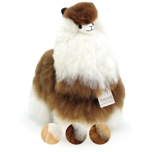 INKARI Peluche Alpaca in Lana d'Alpaca Naturale e Morbida - Vera Lana d'Alpaca, Regalo Perfetto per Donne e Bambini - Macchiato (32cm)