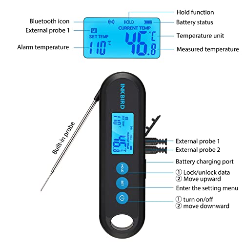 INKBIRD Termometro Cucina Professionale Digitale Barbecue Bluetooth con 2 Acciaio Inossidabile Sonda, per Carne IHT-2PB BBQ Griglia Forno