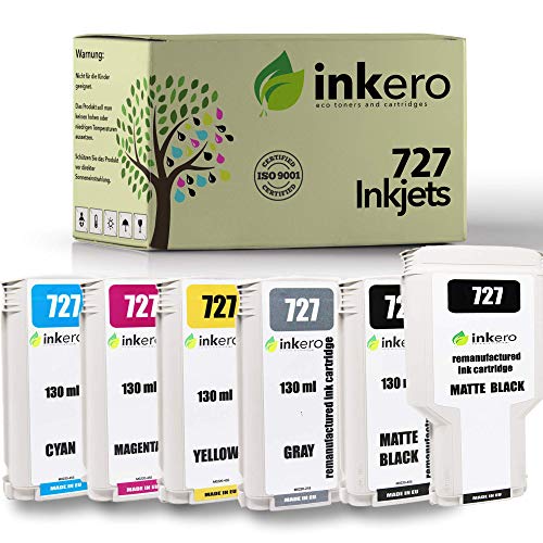 Inkero Compatibile con HP 727 (6 pezzi: MBK 300 ml 130 ml: PBk/C/M/Y/G)