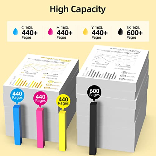 Le cartucce d'inchiostro 16 XL sono appositamente progettate per garantire prestazioni di stampa elevate. Fornisce al documento un testo nitido e nitido. Inoltre, ripristina i colori vivaci delle tue foto nella massima misura possibile