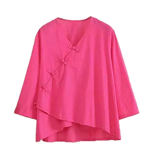 Inlefen Camicetta da Donna T-Shirt Manica Lunga Elegante Cotone Lino Bouffant Casual Plain Girocollo Stile Cinese retrò Pullover Camicetta Tang Abito Hanfu Camicia