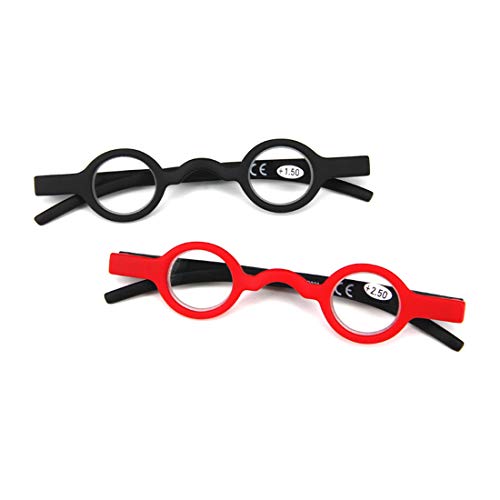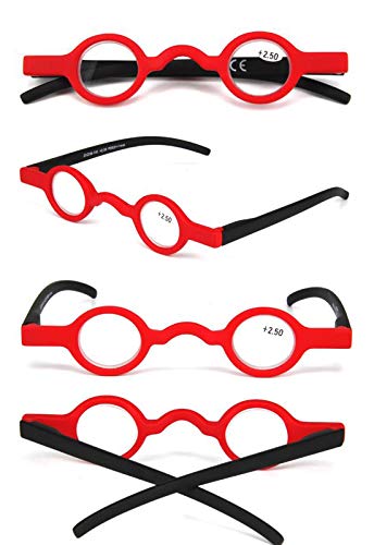 Inlefen Mini occhiali da lettura 2 pack Cerniere a molla Retro occhiali da lettura rotondi Rosso nero 150