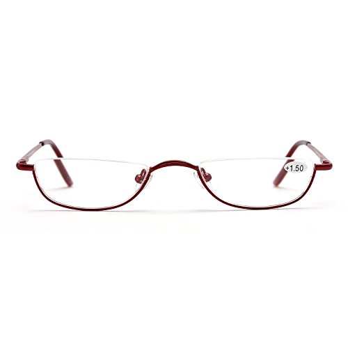 Inlefen Occhiali da lettura Half Moon Mezza montatura unisex Montature in metallo con cerniera a molla (red/+3.0)
