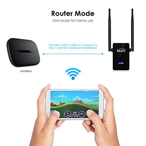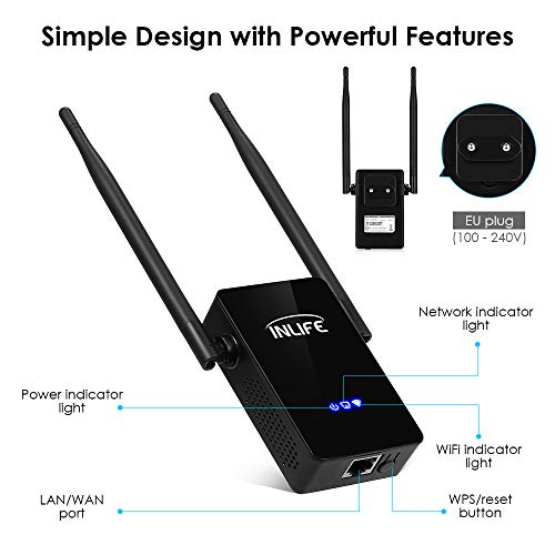 INLIFE Ripetitore Wireless R1 Range Extender Universale, WiFi Router, Modo Access Point AP, AC Dual Band a 750Mbps, Gigabit, Antenne Esterne