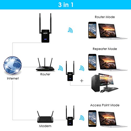Ci sono 3 modalità di connessione. Sono ripetitore, router e Wireless AP. Che è compatibile con la rete Wireless, Router e altri dispositivi WiFi-abilitati come Smartphone, laptop, desktop, TV box e ecc.