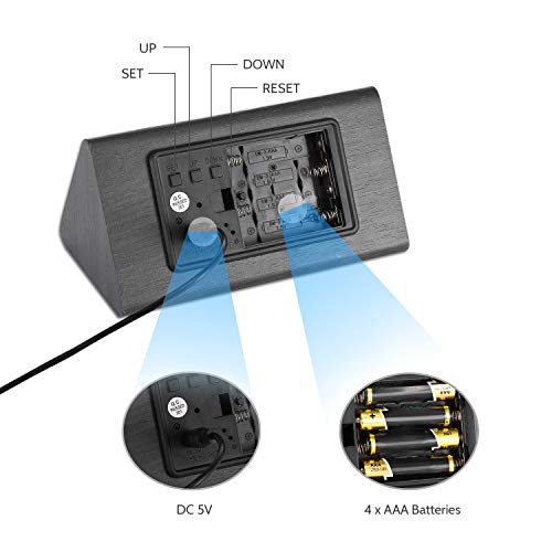 INLIFE Sveglia Digitale a Comodino Sveglia a Tavolo LED in Legno 3 Sveglie da Modificare Temperatura ℃/℉ Luminosità Regolabile Sistema di 24 Ore (Legno Nero)