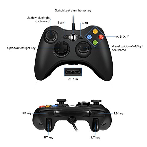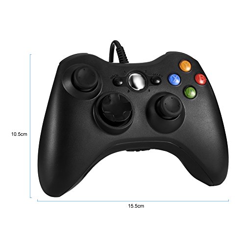INLIFE Xbox 360 Controller Gamepad Cablato USB, Joystick, Joypad con Cavo USB Compatibile per Windows XP/7/8/8,1/10 e Xbox 360 (Nero.)