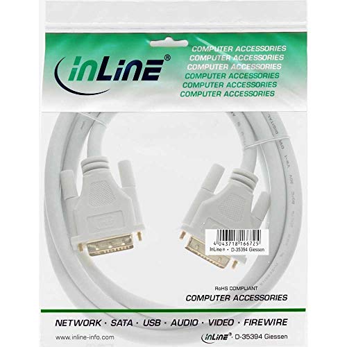InLine 20987 Cavo DVI-D 24+1 Maschio a DVI-D 24+1 Maschio, PIN Dorati, Dual Link, 3M Bianco