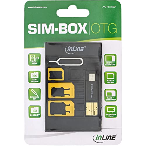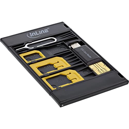 InLine 35091 SIM-Box, Adattatore per Scheda SIM e Scatola Accessori con Lettore OTG