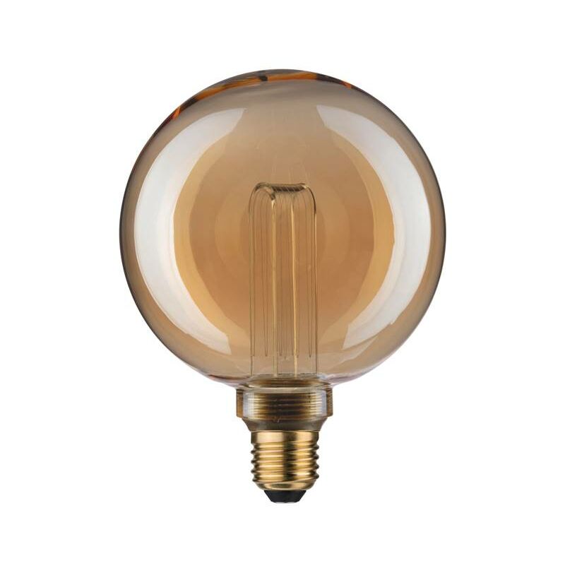 Inner Glow Edition LED Globe G125 - E27 230V 160LM 3.5W 1800K GOLD Edizione Inner Glow - La vera bellezza proviene dall'interno, dimostra il nostro nuovo globo vintage con un decorativo Pistone interno. Le pere con incisione laser fine danno la loro luce dorata sottile e completamente priva di abbagliamento all'ambiente e l'anello luminoso alla fine del pistone irradia la luce perfettamente diretta. Pertanto, le lampadine stravaganti mancano ogni semplice luce della luce l'aspetto perfetto glamour. Si adatta a qualsiasi versione E27 disponibile in commercio. superficie supportata in oro temperatura colore: 1800k - oro light Tecnologia LED efficiente Dati tecnici: Dimensioni in mm: Altezza: 164, Diametro: 125 Peso in grammi: 130 Lampadine incluse: 3.5 watt Tipo / socket LED: E27 Colore chiaro in Kelvin: 1800 Flusso di luce nominale (LM): 160 Dimmerabile: No