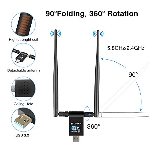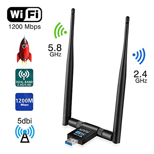 Innislink Adattatore Antenna WiFi, WiFi Adattatore USB 3.0 1200Mbps 5dBi Antenna Dual Band 2.4G/5.8G Chiavetta WiFi Dongle Wireless Adapter per PC/Laptop/Tablet Windows XP/Vista/7/8/10, Linux Mac OS