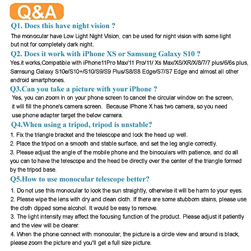 Ampia applicazione: goditi perfettamente il tuo monoculare a binocolo. Ideale per la caccia, l'arrampicata, l'osservazione degli uccelli, la vita e il paesaggio, i concerti, lo sport, l'escursionismo, il campeggio e i viaggi. Adatto per la maggior parte degli smartphone.