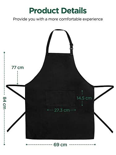 Tasche convenienti: I nostri grembiuli includono due ampie tasche frontali, fornendo molto spazio per il ripostiglio di schede delle ricette, penne, termometri per carne e altro ancora.