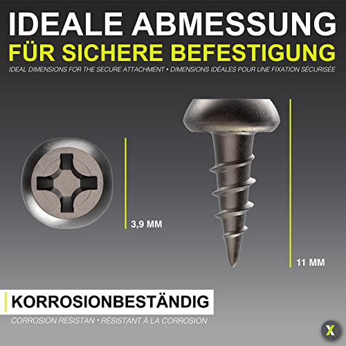 INNONEXXT Premium Viti autofilettanti | 500 pezzi, scanalatura a croce - 3,9 X 11 mm | viti per profili, Viti di bloccaggio per pannello in metallo e alluminio, viti per lamiera | Fatto in Gemania