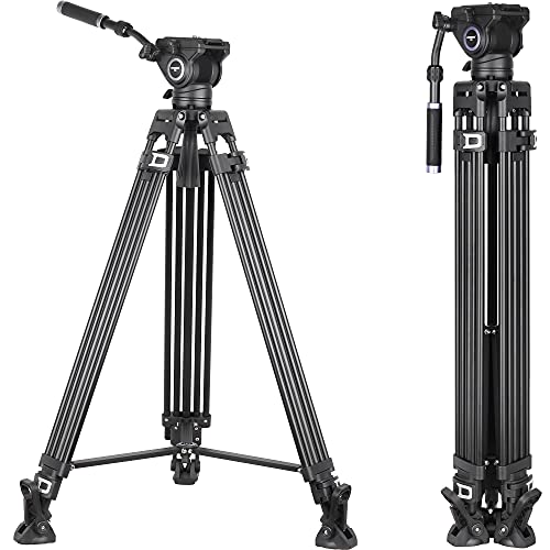 INNOREL VF80 186cm/73pollici Professionale Resistente Sistema Treppiede Video,Lega di Alluminio Carico Massimo 12kg, con F80 Testa Fluida Girevole a 360 Gradi & Borsa(Kit Treppiede e Testa Fluida)