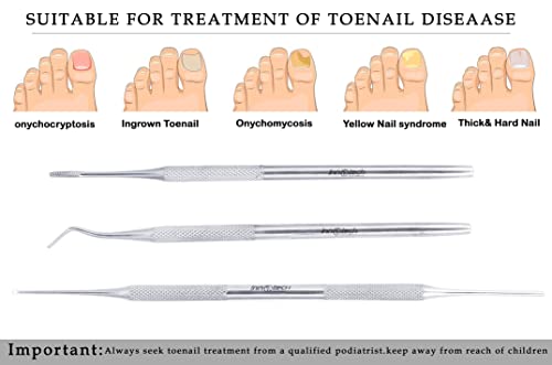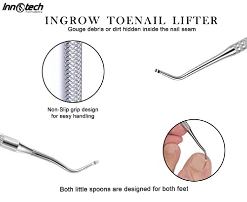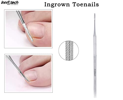 Innotech Set di attrezzi double face in acciaio inox, 3 pezzi. Detergente e sollevatore per unghie incarnite, pieghe per unghie, bordi delle unghie, cura dei piedi, in acciaio inox
