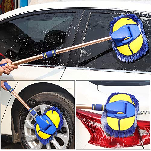 Innoter - Spazzola telescopica per lavaggio auto, in ciniglia, rotazione a 360°, in microfibra, super assorbente