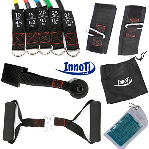 InnoTi Bande Elastiche Resistenza per Bodybuilding - Cavi Palestra Multifunzione per Allenamento a Casa - Elastici Palestra Fitness in Lattice - Maniglie e Cavigliere Imbottite e Ancoraggio per Porte